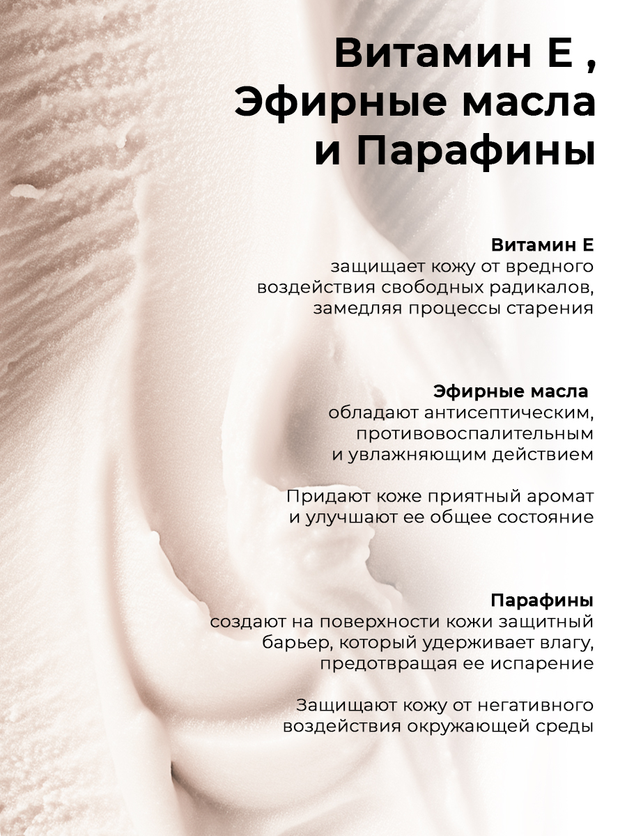 Увлажняющий парафин-крем для рук, ног, кутикулы и тела — это натуральное средство для ухода, созданное с использованием исключительно гипоаллергенных компонентов. Крем - парафин восстанавливает и заживляет сухую кожу, поддерживая ее здоровье, мягкость и красоту. В состав включены природные масла и витамин Е, которые глубоко увлажняют и питают кожу, предотвращая образование трещин и шелушения. Подходит для использования как на руках, так и на ногах, а также для ухода за телом и кутикулой.