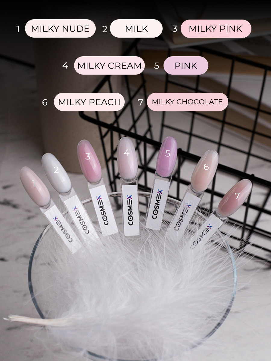 Камуфлирующий самовыравнивающийся гель для ногтей из серии Milk — идеальное решение для создания безупречного маникюра.