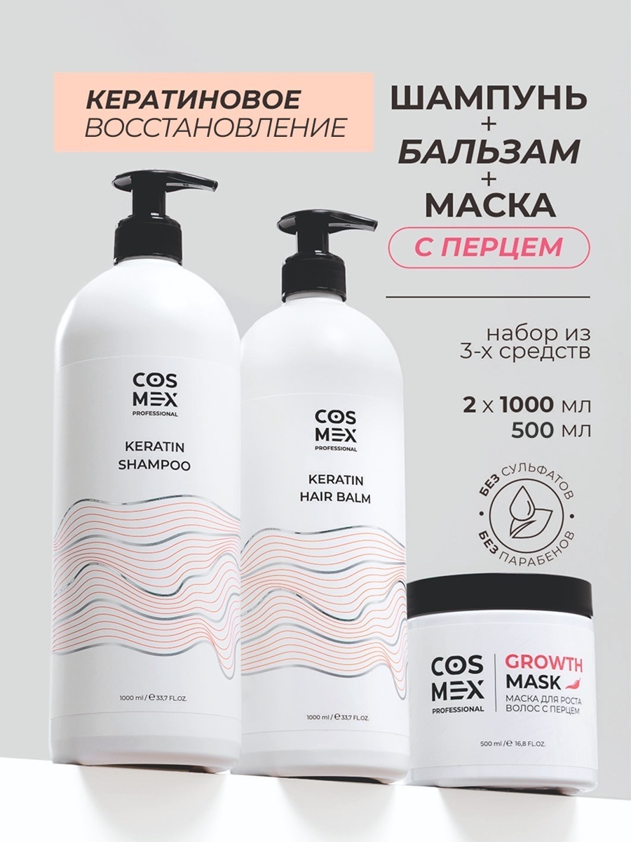 Профессиональный набор уходовой косметики для волос включает в себя три средства, которые обеспечивают полноценный и бережный уход. Бессульфатный шампунь с кератином мягко очищает волосы и кожу головы, подходит для окрашенных, жирных или поврежденных волос. Его формула способствует восстановлению структуры волос и предотвращает их ломкость. Это идеальный выбор как для женщин, так и для мужчин, благодаря универсальному действию.