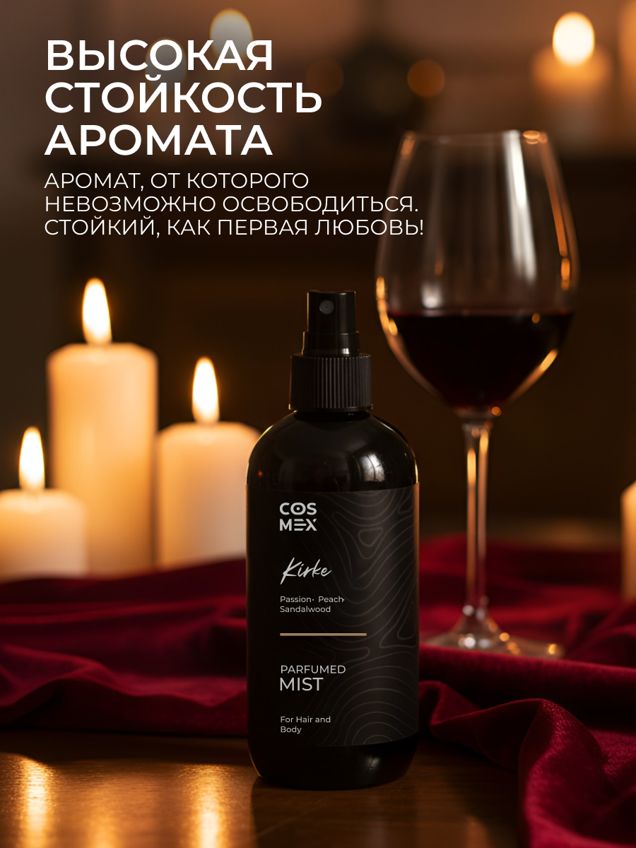 Cosmex Parfumed Mist Tobacco & Vanille — парфюмированный мист для тела и волос с восточным сладко-пряным ароматом табака и ванили. Создаёт мягкую «дымку» на коже и ткани, придаёт волосам лёгкий аромат и блеск. Можно использовать как спрей для тела, как спрей для волос и как ароматизатор для одежды в шкафу. Унисекс — подходит мужчине и женщине, отличный подарок на Новый год, для мамы, подруге или коллеге.