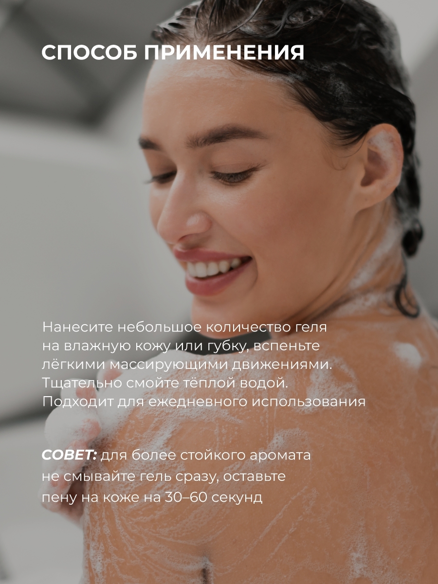 Наслаждайтесь моментами релакса под теплыми струями воды, позволяя роскошному аромату настроить себя на пробуждение или помочь расслабиться после долгого дня. Это не просто средство гигиены без красителей и агрессивных сульфатов, а приятный бьюти - ритуал, который дарит коже тонус и очищение, а вам – неповторимое ощущение свежести и уюта. Стильная бутылка с удобным дозатором (объем 0,3 литра) обеспечивает гигиеничное и простое использование для взрослых женщин и мужчин, девушек и парней - подростков. В линейке бренда представлены гели для душа с различными ароматами, чтобы вы могли выбрать их себе или в виде подарочного варианта для подруги или друга, сестры или брата. У нас есть акции и распродажи, вы можете купить наши товары в подарок со скидкой!