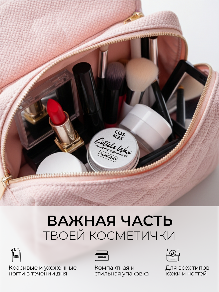 Воск для ногтей и кутикулы Cosmex состоит из натуральных компонентов, которые обеспечивают интенсивный уход и восстановление.