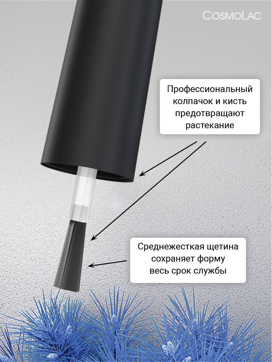 Нанести гель-лак тонким, но плотным слоем. Просушить в LED/UV-лампе 60/180 сек. При необходимости нанести дополнительные слои гель-лака, каждый просушить в LED/UV-лампе 60/180 сек.