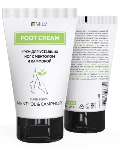 Крем для уставших ног MILV с ментолом и камфорой 150 мл