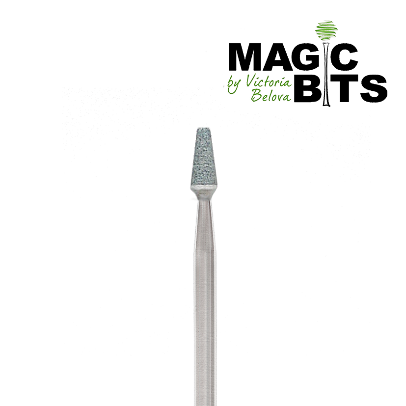 ВНИМАНИЕ: Размер и форма данной фрезы, может отличаться друг от друга в пределах заводского допуска. Что не влияет на основные свойства и задачи инструмента. Корундовый конус маленького размера с мягкой абразивностью. Фрезы Magic Bits. Корундовые тупые конусы используются для работы по натуральному ногтю: для счищения птеригия с ногтевой пластины, удаления расслоек со свободного края и остатков от предыдущего покрытия. Также могут использоваться в качестве бафа для удаления глянца с ногтевой пластины перед нанесением долговременного покрытия.