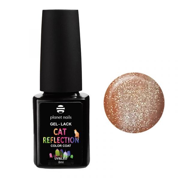 Гель-лак Cat reflection Planet Nails Гель-лак "Cat reflection"- коллекция магнитных гель-лаков со светоотражающим эффектом. При дневном свете покрытие выглядит как гель-лак с эффектом кошачьего глаза, но стоит добавить источник дополнительного освещения и оно вспыхивает ярким свечением! Для создания блика необходимо использование магнита. Гель-лак "Cat reflection "можно использовать как самостоятельное покрытие, так и для дизайна ногтей. Подложки темного цвета не требуется. Для создания эффектных фото и видео рекомендуется использовать вспышку. Профессиональный гель-лак Planet Nails обеспечивает плотное ровное покрытие, стойкий насыщенный цвет, не скалывается и не стирается.