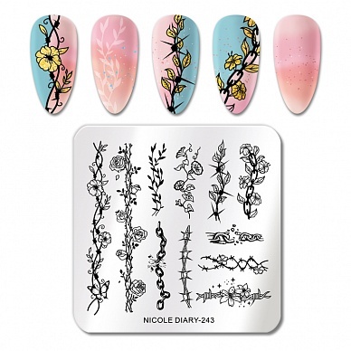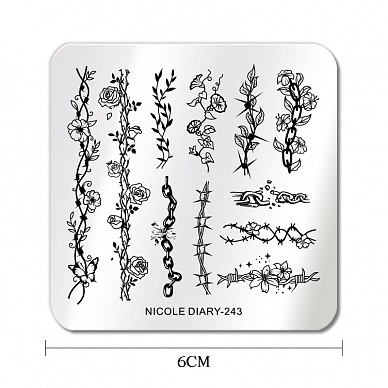 Пластина для стемпинга Nicole Diary - печатная форма для нанесения рисунков на ногти (стемпинга).