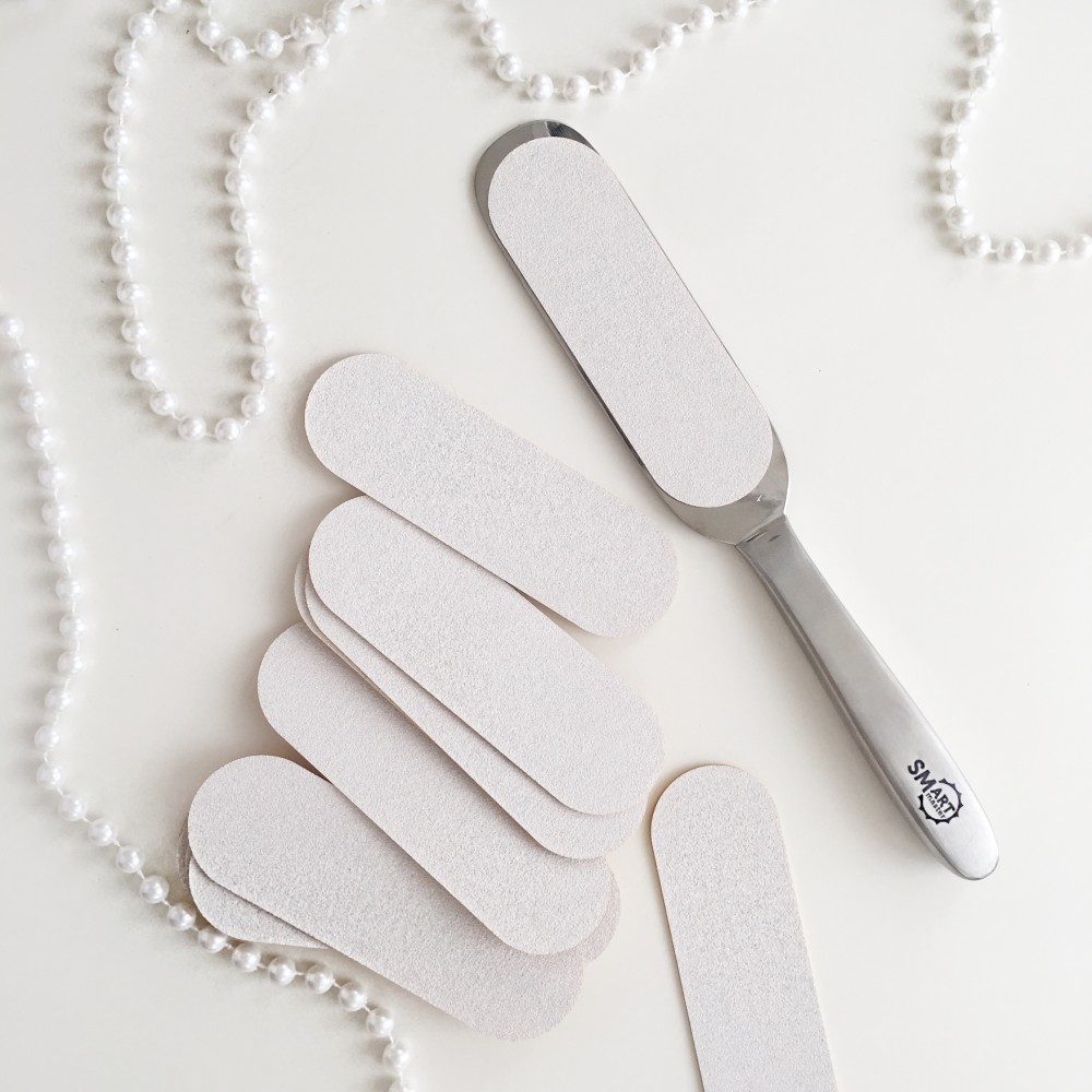 PUSH UP это файл на подложке из силикона, высотой 1 мм. При нажатии на файл, он прогибается и отлично амортизирует, что очень удобно в работе и комфортно клиенту.Сменный файл имеет особую форму вырубки, подходящую для большинства представленных на рынке педикюрных пилок.Специально подобранный состав абразивного материала позволяет быстро и эффективно удалить ороговения.Состав абразива Карбид Кремния, с силиконовым покрытием, что не даст забиваться файлу во время работы и не рвет кожу.Абразив Р180 подходит для удаление мелких омозолестостей и шлифовки кожи.